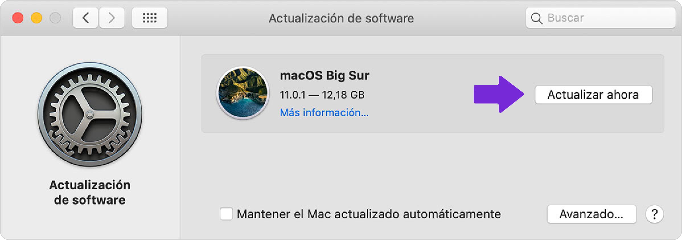 - Si tu versión de macOS es Big Sur (versión 11) o superior, no es necesario que la actualices.