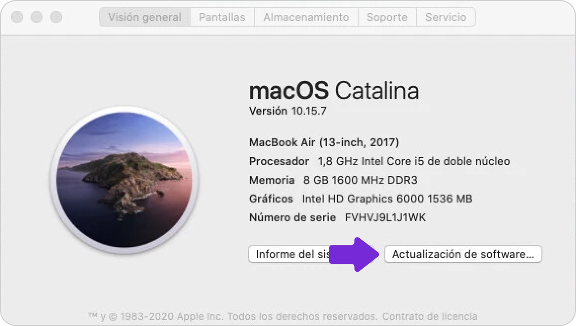 - Si tu versión es Catalina (10.15) o inferior, necesitarás actualizarlo (continúa al paso 2).
