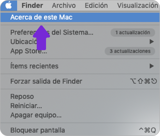 Haz clic en el icono de Apple en la esquina superior izquierda de tu pantalla y selecciona “Acerca de este Mac”.