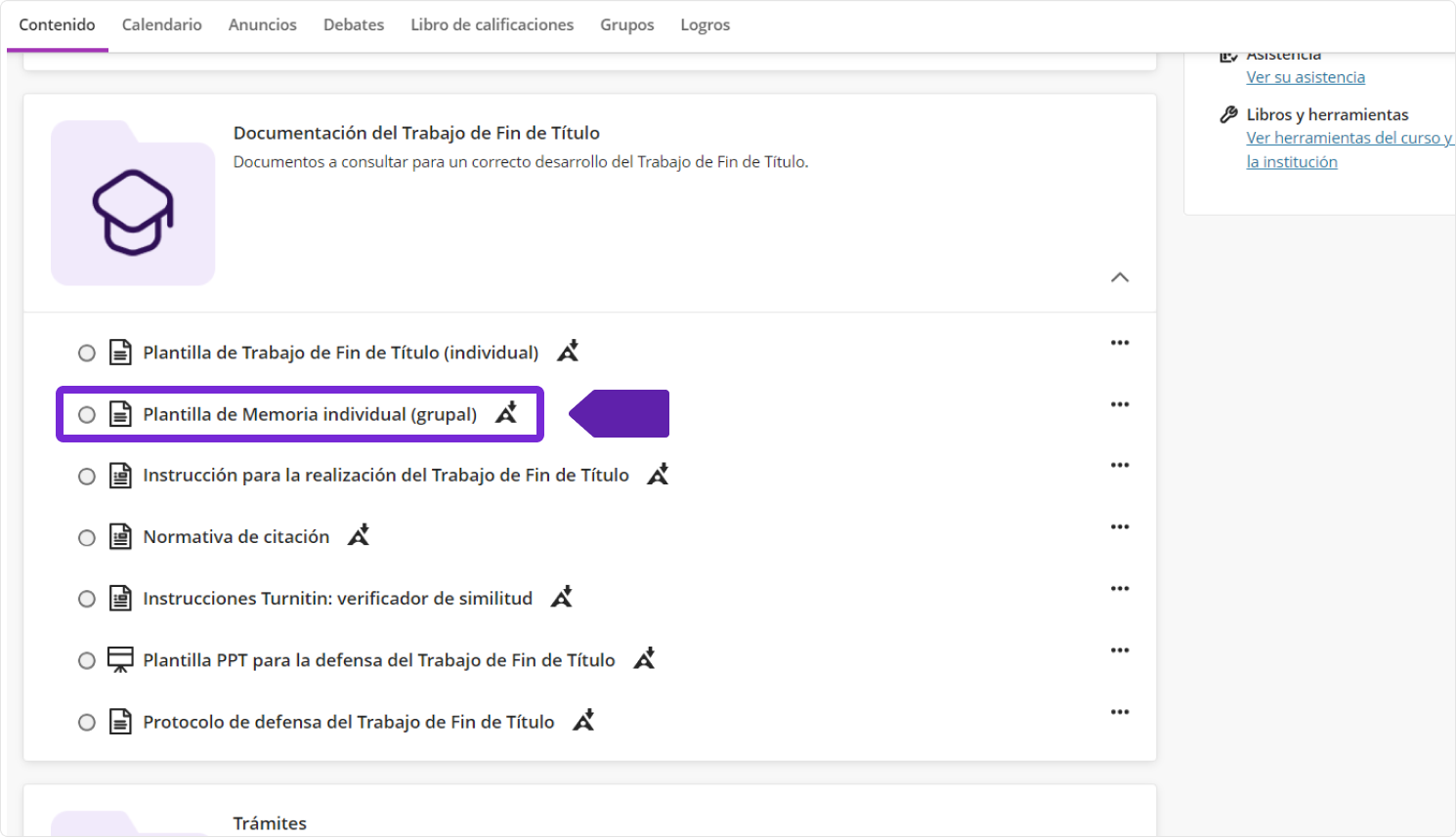 La plantilla de memoria individual es un documento que se solicita en los Trabajos de Fin de Título con modalidad grupal.