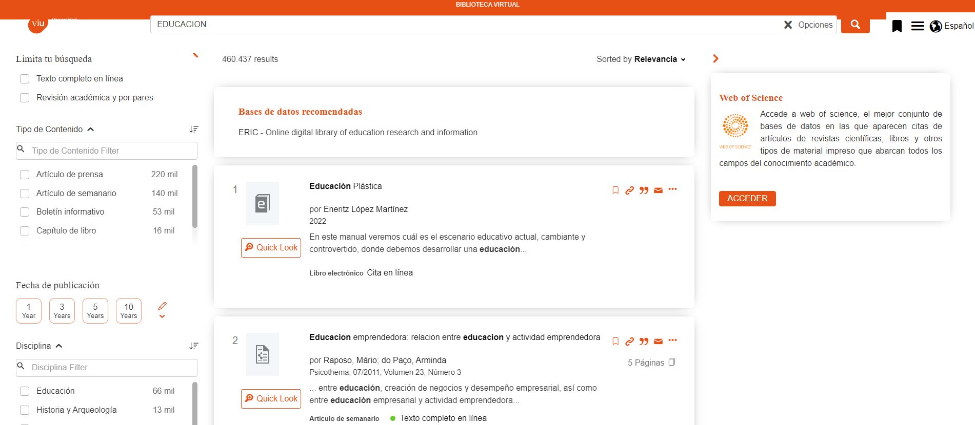 En esta página aparecerán todos los resultados relacionados con tu búsqueda. Si te interesa limitar y acotar tu búsqueda, filtrando por diferentes opciones, puedes hacerlo en la barra lateral izquierda.